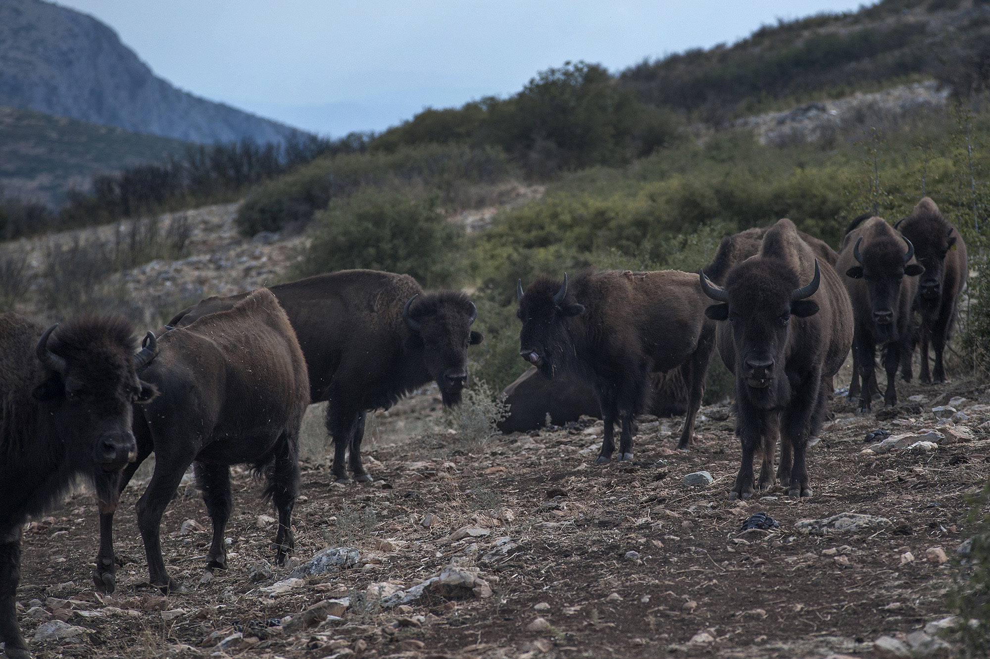 Αρχικά, έφερα τον ελληνικό παραδοσιακό μαύρο χοίρο. Παλιά ράτσα, για να τη βρω πήγα ως τη λίμνη Κάρλα στον Βόλο, όπου ένας παππούς κρατούσε δέκα χοιρομητέρες. «Θα μαγειρεύεις και θα μοσχοβολάει η γειτονιά», μου είπε. Ήθελα να φέρω τη γεύση στο τραπέζι του Έλληνα. Τρία πράγματα είναι η συνταγή της επιτυχίας: η ράτσα, η προσαρμογή στα βοσκοτόπια και η διατροφή, δηλαδή ρίζες, βελανίδια, βότανα.Οι βίσωνες προέκυψαν από την αγάπη μου για τους Ινδιάνους και το ιερό τους ζώο. Απευθύνθηκα στο Ινστιτούτο της Βόρειας Ντακότα των ΗΠΑ και έφερα 40 ζωντανά, με πλοίο ως την Αμβέρσα κι από εκεί οδικώς στη Λάρισα. Πριν από αυτό, ήρθαν στο κτήμα Αμερικάνοι ειδικοί και γεωπόνοι, έλεγξαν το κλίμα, τα βοσκοτόπια κι έδωσαν την έγκριση. Ο βίσωνας είναι δύσκολο και απρόβλεπτο ζώο. Αυτή, όμως, είναι η γοητεία του. Για να συνεννοηθείς με το άγριο ζώο, πρέπει να σκεφτείς σαν αυτό – κι ο άνθρωπος έχει τέτοια ένστικτα. Χρειάζονται πρακτικές γνώσεις, που μετά από 100 χρόνια θα τις λέμε επιστήμη, τώρα όμως τις λέμε «τσομπαναρική»Για να συνεννοηθείς με το άγριο ζώο, πρέπει να σκεφτείς σαν αυτό – κι ο άνθρωπος έχει τέτοια ένστικτα.Οι βίσωνες όταν αγριέψουν, δεν καταλαβαίνουν τίποτα. Έχουν το διπλάσιο σίδερο από τα βοοειδή, διπλάσια πρωτεΐνη από το μοσχάρι, όλη αυτή η εκρηκτικότητα είναι η φύση τους. Στην αρχή κι εγώ μάθαινα. Έχασα ζώα. Έτρεχαν όπως στις ταινίες και προσπαθούσα να σταματήσω στα 3 χιλιόμετρα μια αγέλη 40 βισώνων. Απορώ πώς δεν με σκότωσαν. Κατάλαβα ότι πρέπει να τους αφήσεις να βγάλουν τη φύση τους και μετά γίνονται αρνιά.Το αρσενικό, αν πιάσει 5-6 χρόνια, μπορεί να φθάσει σε βάρος τον έναν τόνο, το θηλυκό 700 κιλά. Σφάζω κάθε δύο χρόνια, στα 250 κιλά το σφάγιο. Σήμερα έχω 57 βίσωνες. Αν θέλω να τους βρω, ξυπνώ στις 5 τα χαράματα. Αν με πάρεις ο ήλιος, τους χάνω γιατί μπαίνουν κάτω από τεράστια πουρνάρια. Τα άγρια ζώα βόσκουν νωρίς το πρωί και αργά το απόγευμα, λόγω και της θερμοκρασίας. Στην περιοχή έχει λύκους, αλλά δεν τους πλησιάζουν.Τα κατσίκια είναι το τρίτο κομμάτι του κτήματος, το πολυτελείας. Θέλει πολύ δουλειά και είναι πολύ ευαίσθητο. Έχω 350 κατσίκια, ισπανική ράτσα από τη Μούρθια, που βγάζει πολύ ποιοτικό γάλα, με πρωτεΐνη και λιπαρά. Το επόμενο σχέδιο είναι να γίνει κάθετη η μονάδα. Με την κόρη μου σχεδιάζουμε ένα αλλαντοποιείο, εδώ στην κορυφή. Θέλει να το προχωρήσει στην ωρίμανση, να κάνει το προσούτο. Συνεργαζόμαστε με τα καλύτερα βιολογικά ντελικατέσεν και επιλεγμένα σημεία πώλησης στην Ελλάδα και το εξωτερικό. Είμαστε το μοναδικό κτήμα σήμερα που παράγει πιστοποιημένα βιολογικά προϊόντα, αποκλειστικά από ελευθέρας βοσκής ζώα.Δεν μου λείπουν τα μαγαζιά και η νύχτα. Πρέπει να ξέρεις να φεύγεις από το παιχνίδι πριν σε διώξουν. Εγώ έκανα 1.500 άτομα να διασκεδάζουν κάθε βράδυ, ήταν μια γιορτή. Κι αυτό έχει ένα τέλος. Μπορείς στην Αμερική να διοικείς μια αλυσίδα 100 εστιατορίων ή κλαμπ από το γραφείο σου σε έναν πύργο. Εκείνο, όμως, είναι πλέον διοίκηση επιχειρήσεων, δεν είναι πάρτι. Εδώ δεν είναι Λος Άντζελες να γραφτεί το όνομά σου σε αστέρι στο πεζοδρόμιο. Στην Ελλάδα, όση επιτυχία κι αν κάνεις, το όνομα κρατάει για δύο γενιές. Ήρθα εδώ, γιατί ο τόπος με ξεκουράζει, με βοηθάει η επαφή με το περιβάλλον και τη φύση. Είναι ευλογία να μπορείς να επιλέξεις να γυρίσεις στον τόπο σου – όχι για να αποσυρθείς, αλλά για να δημιουργήσεις».