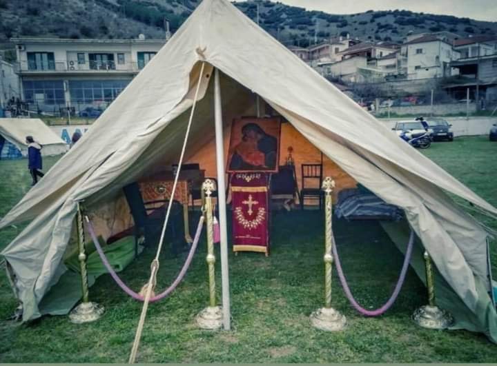 Η Παναγία φυλάει τον καταυλισμό με τις σκηνές