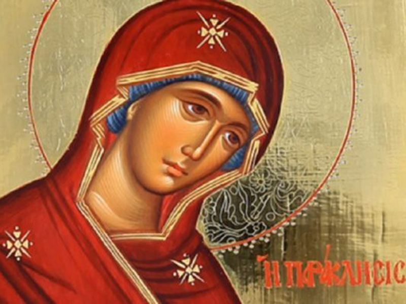 Ο Χριστός από το ύψος του Σταυρού μας την κληροδότησε ακριβή μας μητέρα. Να θυμηθούμε, ότι από το ύψος του Σταυρού Του είπε τις γεμάτες νόημα λέξεις, όπως τις σημειώνει ο ευαγγελιστής και που δείχνουν τον καινούργιο ρόλο της σαν Μητέρα μας: «Ιησούς ουν ιδών την μητέρα και τον μαθητήν παρεστώτα όν ηγάπα, λέγει τη μητρίαυτού· γύναι, ίδε ο υιός σου, είτα λέγει τω μαθητή· ίδε η μήτηρ σου» (Ιωάν. 19, 26-27).