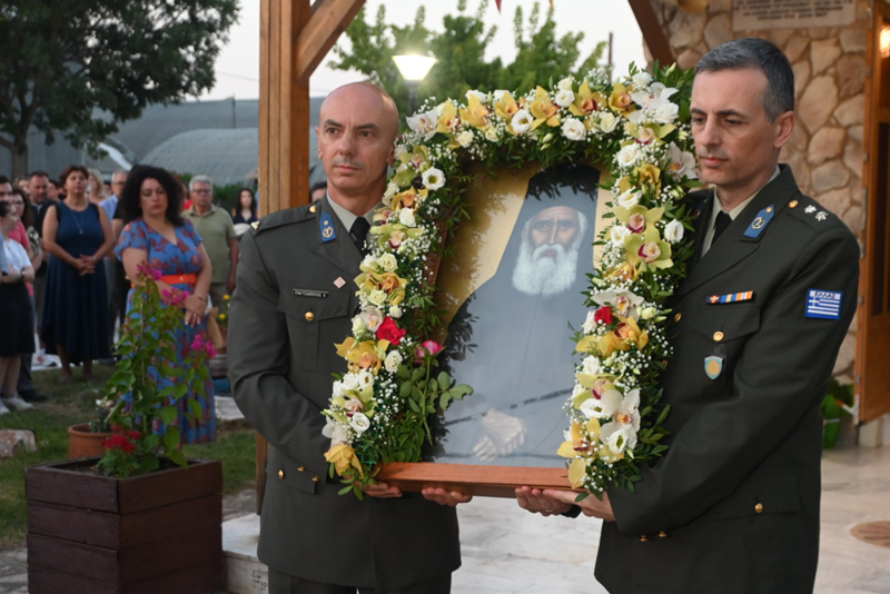 Λαϊκό προσκύνημα πραγματοποιήθηκε το απόγευμα της Παρασκευής στον Μέγα Πανηγυρικό Εσπερινό μετ’ Αρτοκλασίας και Θείου Κηρύγματος, στο παρεκκλήσι εντός του Στρατοπέδου Διαβιβάσεων και Μηχανικού Γεφυροποιίας στον Αμπελώνα, προς τιμήν του Αγίου Παϊσίου.