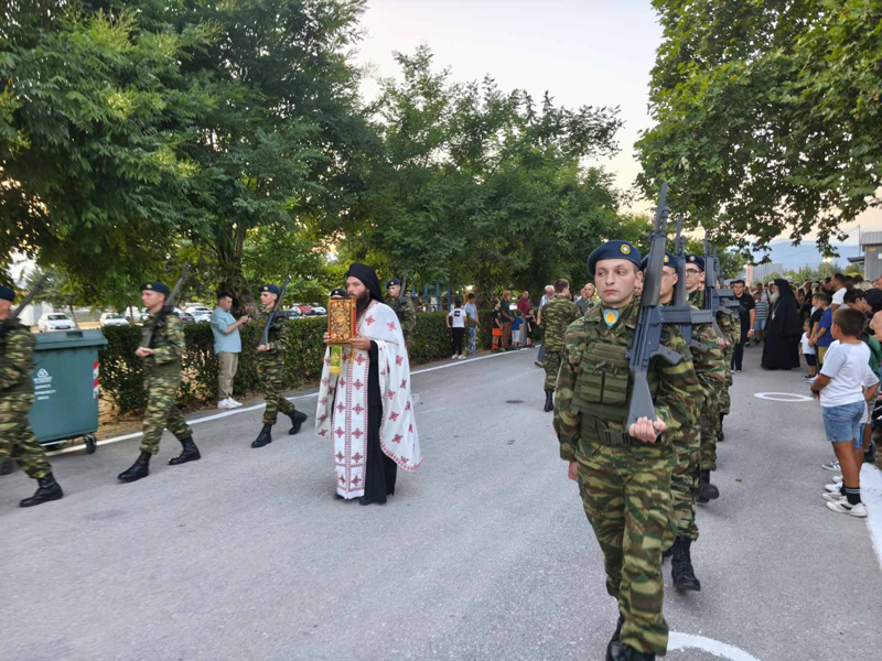 Τον Εσπερινό τέλεσαν έξι ιερείς, με προεξάρχοντα τον Αρχιερατικό Επίτροπο Τυρνάβου, π. Γεώργιο. Ακολούθησε λιτάνευση της Ιερής Εικόνας του Αγίου Παϊσίου εντός του στρατοπέδου, με τη συνοδεία ένοπλου αγήματος, τμήματος της φιλαρμονικής της 1ης Στρατιάς και τη συμμετοχή πλήθους πιστών. Την εικόνα μετέφεραν αξιωματικοί του στρατοπέδου με απόλυτο σεβασμό και ευλάβεια.