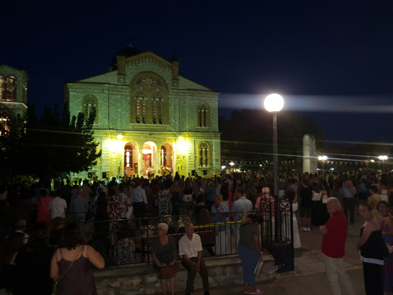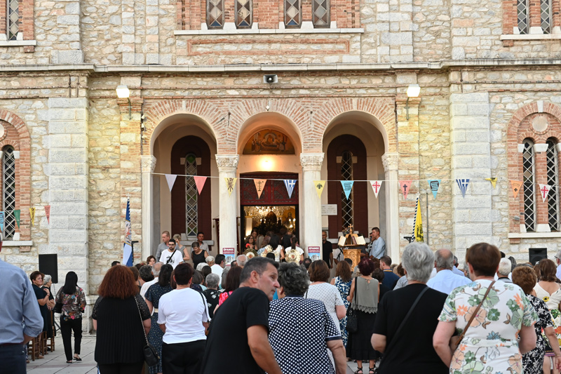 Στον μεγαλοπρεπή εντυπωσιακό μητροπολιτικό Ναό που κοσμεί τον Αμπελώνα πραγματοποιήθηκε ο ο Πανηγυρικός Εσπερινός μετά Αρτοκλασίας. Φωταγωγημένος περιμένει την μεγάλη στιγμή της αποκατάστασης για να γίνει ξανά η Θεία Λειτουργία μετά τις ζημιές από τον σεισμό της 3ης Μαρτίου.