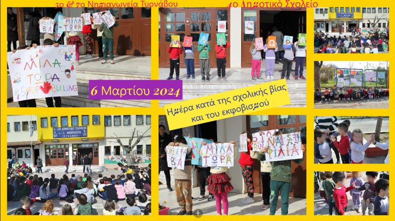 Πανελλήνια Σχολική Ημέρα κατά της Βίας στα 4ο Δημοτικό Σχολείο και 5ο & 7ο Νηπιαγωγεία Τυρνάβου