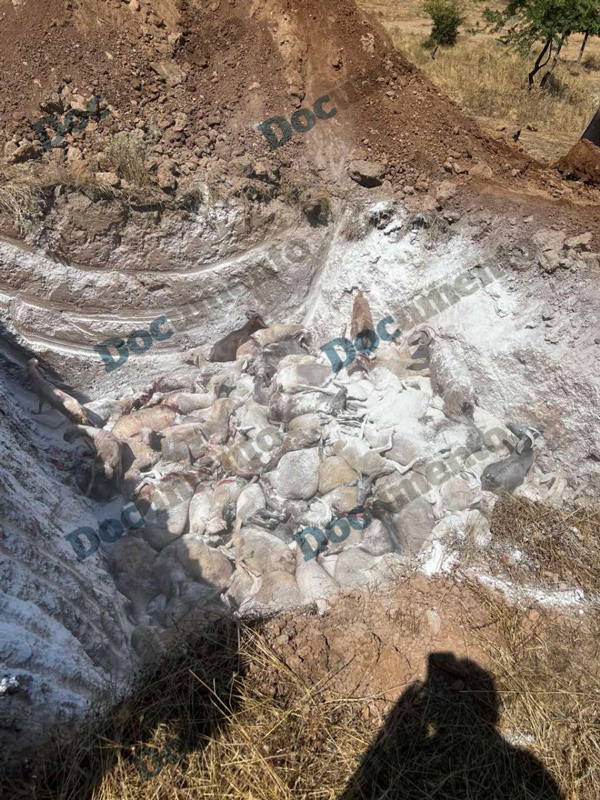 Το documentonews.gr, παραθέτει φωτογραφικά ντοκουμέντα από το συγκεκριμένο περιστατικό. Όπως φαίνεται, οι αρμόδιες υπηρεσίες έχουν ανοίξει λάκκο μέσα στο οποίο πρόκειται να θάψουν τα μολυσμένα με πανώλη αιγοπρόβατα. Ωστόσο, όπως μπορεί να διαπιστώσει κανείς, ορισμένα από τα αιγοπρόβατα είναι ζωντανά και στέκονται όρθια μέσα στο λάκκο. Σύμφωνα με τις σχετικές καταγγελίες αυτό έγινε διότι, οι αρμόδιες υπηρεσίες επιφόρτισαν τους κτηνοτρόφους με το να «ακινητοποιούν και αναισθητοποιούν» οι ίδιοι τα αιγοπρόβατα και στη συνέχεια να τα θάβουν στην κυριολεξία ζωντανά, χωρίς να έχει προηγηθεί η θανάτωσή τους, όπως έγινε σε άλλες κτηνοτροφικές μονάδες της περιοχής.