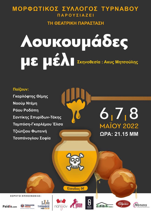 Το TirnavosPress ως χορηγός επικοινωνίας σας παρουσιάζει τη παράσταση ”Λουκουμάδες με μέλι”: