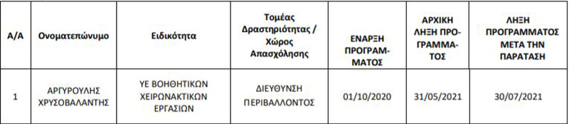 Παράταση απασχόλησης ωφελούμενων στο πλαίσιο της δράσης «Προώθηση της απασχόλησης μέσω Προγραμμάτων Κοινωφελούς Χαρακτήρα για 36.500 άτομα σε Δήμους, Περιφέρειες, Κέντρα Κοινωνικής Πρόνοιας Περιφερειών (ΚΚΠΠ)/συναφείς φορείς, Υπηρεσίες Υπουργείων και άλλων φορέων.