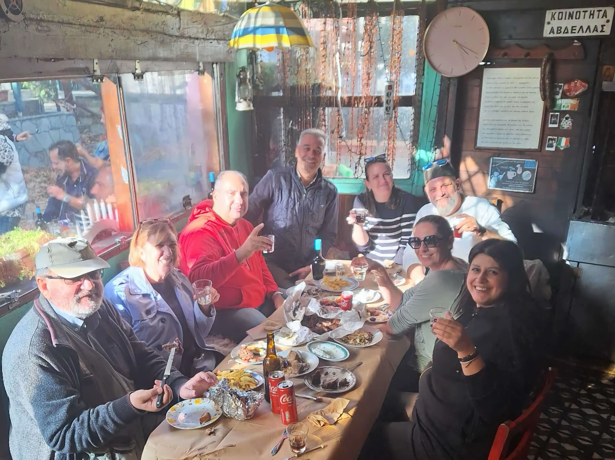 Την παρέα αποτελούσαν ο Τσένης Απόστολος, διευθυντής στο γραφείο του Αθανασίου Πλεύρη, ο Κατσιπέρης Νικόλαος, η Πλιάτσικα Σοφία, ο Μπαζούκης Δημήτριος και φίλοι τους. Οι συμμετέχοντες βρέθηκαν σε μια γνωστή ταβέρνα της Αβδέλλας, απολαμβάνοντας το ζεστό και φιλόξενο περιβάλλον, που προσέφερε την ιδανική ατμόσφαιρα για μια συνάντηση γεμάτη φιλία και πατριωτικό πνεύμα.