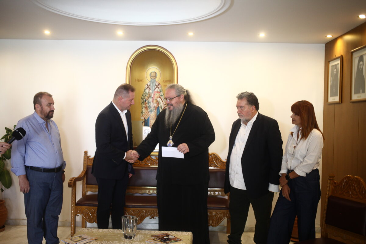 Την Παρασκευή (29/9) στην Ιερά Μητρόπολη Λαρίσης και Τυρνάβου, βρέθηκαν μέλη της διοίκησης της ΠΑΕ ΑΕΛ, για να παραδώσουν την επιταγή με τα χρήματα που συγκεντρώθηκαν προκειμένου να δοθούν στους πληγέντες συνανθρώπους μας που βιώνουν μεγάλες δυσκολίες. Η ΠΑΕ ΑΕΛ διέθεσε τα έσοδα του αγώνα της πρεμιέρας του πρωταθλήματος της Super League 2 κόντρα στον Καμπανιακό σε όσους έχουν πληγεί. Ο Μητροπολίτης Λαρίσης και Τυρνάβου κ. Ιερώνυμος παρέλαβε το χρηματικό ποσό που συγκεντρώθηκε από τον πρόεδρο της ΠΑΕ ΑΕΛ κ. Αχιλλέα Νταβέλη. Στην παράδοση ήταν και ο α’ αντιπρόεδρος κ. Ιωάννης Νταβέλης, το μέλος της διοίκησης κ. Δήμητρα Βασιλάκου και ο οικονομικός διευθυντής κ. Τάσος Χριστακόπουλος.