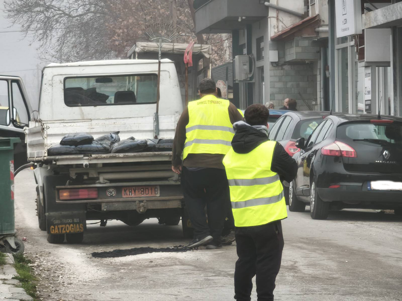 Σε εξέλιξη βρίσκονται εργασίες αποκατάστασης του οδοστρώματος στον Αμπελώνα, με τα συνεργεία του Δήμου Τυρνάβου να προχωρούν στο κλείσιμο λακκουβών που ταλαιπωρούσαν εδώ και καιρό τους οδηγούς.