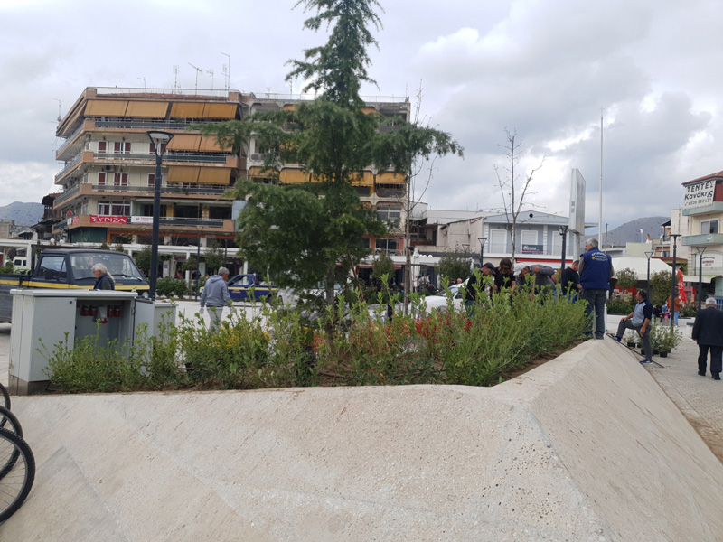 Ένα μεγάλο πρόβλημα της νέας πλατείας προσπαθεί να λύσει η Δημοτική Αρχή και η Υπηρεσία Πρασίνου του Δήμου Τυρνάβου, αυτό με το παρτέρι δίπλα στο σιντριβάνι.