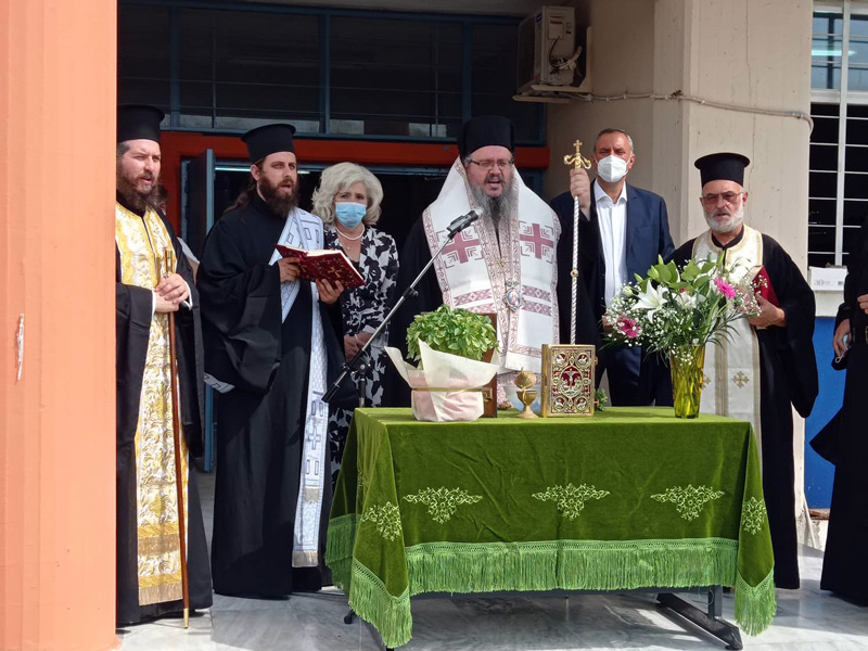 Ο σεβασμιότατος Μητροπολίτης μας αφού τέλεσε τον Αγιασμό απηύθυνε σύντομο πορευτικό λόγο προς τους μαθητές του σχολείου και στη συνέχεια συζήτησε με το σύνολο των διδασκόντων τους εκπροσώπους του συλλόγου Γονέων και Κηδεμόνων ,αντάλλαξαν ευχές για καλή σχολική χρονιά με υγεία και δύναμη.