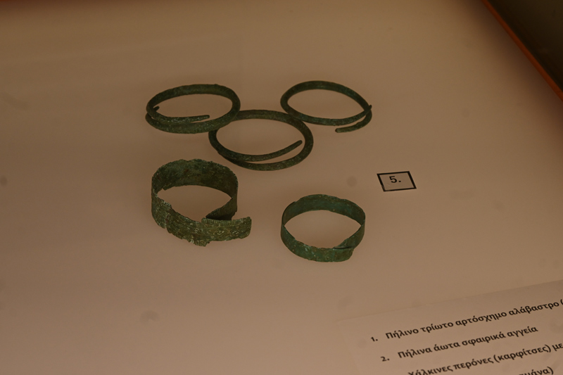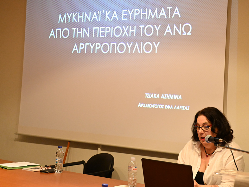 Στο πλαίσιο της εκδήλωσης παρουσιάστηκαν και τα παραδοθέντα μυκηναϊκά αντικείμενα που περιλαμβάνουν κτερίσματα της μυκηναϊκής περιόδου, προερχόμενα από αγρό ιδιοκτησίας της οικογένειάς του στην προϊστορική θέση «Άνω Αργυροπούλι» Λάρισας, τα οποία κατείχε με άδεια της Εφορείας Αρχαιοτήτων Λάρισας από το 1984.