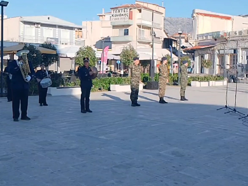 Το πρωί η σημαία υψώθηκε περήφανα υπό τους ήχους της Φιλαρμονικής του Δήμου Τυρνάβου, παρουσία αγήματος των Εφέδρων Αξιωματικών.