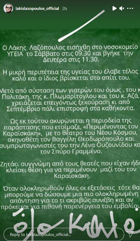 Ο ίδιος έγραψε σε story στο Instagram «όλα καλά».
