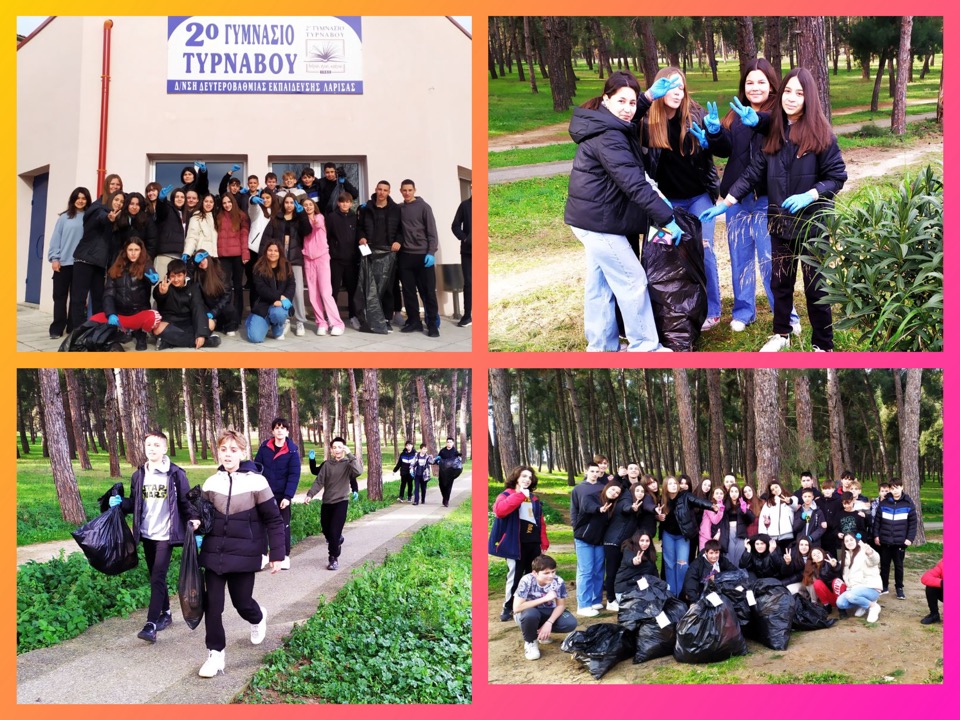 Την Τετάρτη 7-2-2024, οι μαθητές της Περιβαλλοντικής ομάδα του 2ου Γυμνασίου Τυρνάβου φόρεσαν γάντια, πήραν σακούλες απορριμμάτων και καθάρισαν το άλσος του Προφήτη Ηλία Τυρνάβου, φθάνοντας πολύ κοντά στην Ιερά Μονή.