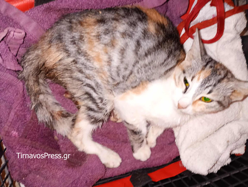 Ο συμπολίτης που βρήκε το ζώο, πήγε να πετάξει τα σκουπίδια του και αντίκρισε το ανήμπορο γατάκι, το οποίο είναι άρρωστο και δεν μπορεί να περπατήσει. Χωρίς δεύτερη σκέψη το περισυνέλεξε, προσπαθώντας να του δώσει μία ευκαιρία ζωής.
