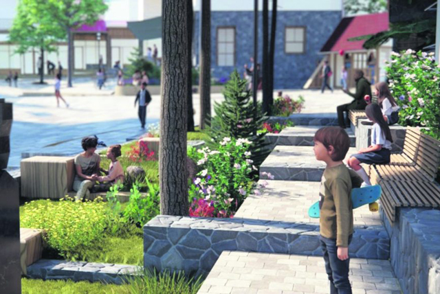 Επομένως, μέσα στον σχεδιασμό περιλαμβάνεται ακόμη η κατασκευή αμφιθεάτρου για πολιτιστικές δράσεις, αρμονικά συνδεδεμένο με το υπάρχον κοινοτικό κατάστημα της πλατείας, αλλά και η δημιουργία προσβάσιμου χώρου αναψυχής στην είσοδό της, που θα λειτουργεί ως ο Κήπος της Σαμαρίνας, με καθιστικούς χώρους, σκίαση και πολύ πράσινο.