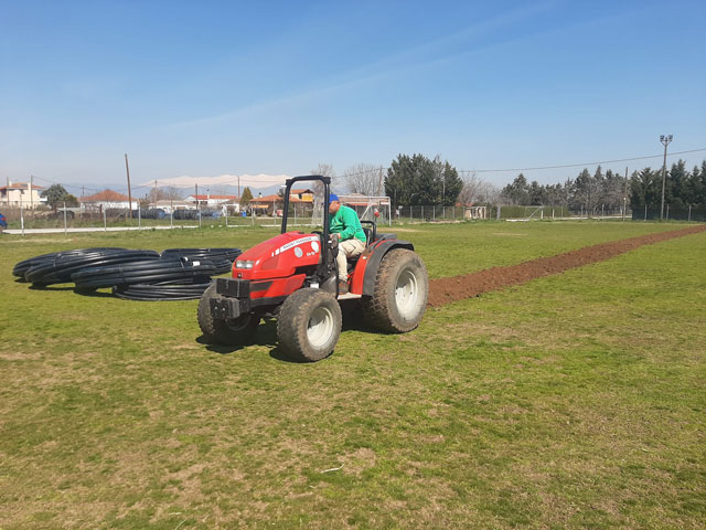 Ξεκίνησαν οι εργασίες για την κατασκευή αυτόματου αρδευτικού δικτύου στο ποδοσφαιρικό γήπεδο των Δέντρων Τυρνάβου.