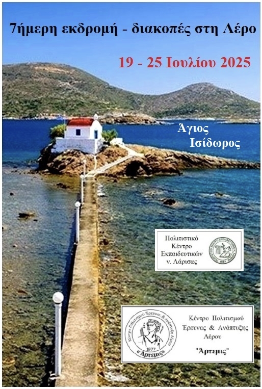 7ήμερη εκδρομή – διακοπές στη Λέρο διοργανώνει το ΠΟΚΕΛ – Πολιτιστικό Κέντρο Εκπαιδευτικών ν. Λάρισας από 19 έως και 25 Ιουλίου 2025, σε συνεργασία με το Κέντρο Πολιτισμού, Έρευνας & Ανάπτυξης Λέρου «Άρτεμις».