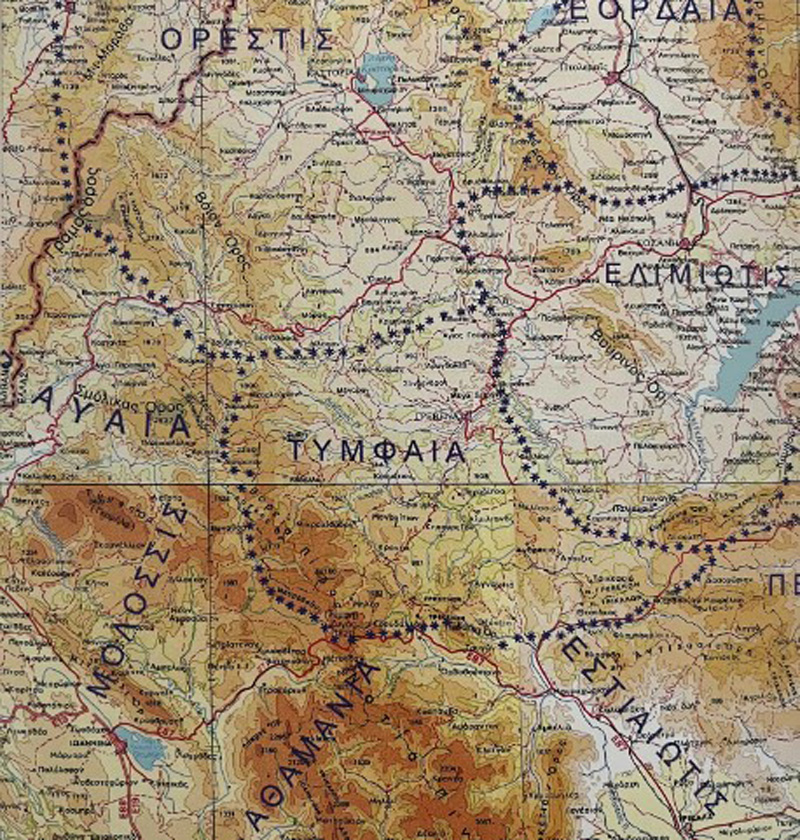 Εικ. 1 (εισαγωγής) :   Χάρτης της Ανω Μακεδονίας (© Γ.Μεντεσίδη-Καραμήτρου, Μουσείο Αιανής).