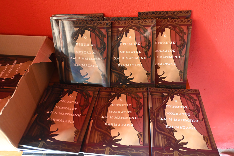 Η μέρα ξεκίνησε το πρωί στο Αρχοντικό Σταύρου Καράσσου, με την παρουσίαση του παιδικού βιβλίου «Ο Πρίγκηπας Μοσχάτος και η μαγεμένη κληματαριά» της Τάνιας Χώτου. Στην ανάγνωση συμμετείχαν οι Έλενα Γράβαλου και Παντελία Κατσή, ενώ την πρωτότυπη μουσική υπογράφει ο Θέμης Σαμαντζής.