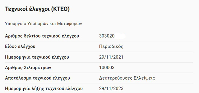 - Ημερομηνία λήξης τεχνικού ελέγχου