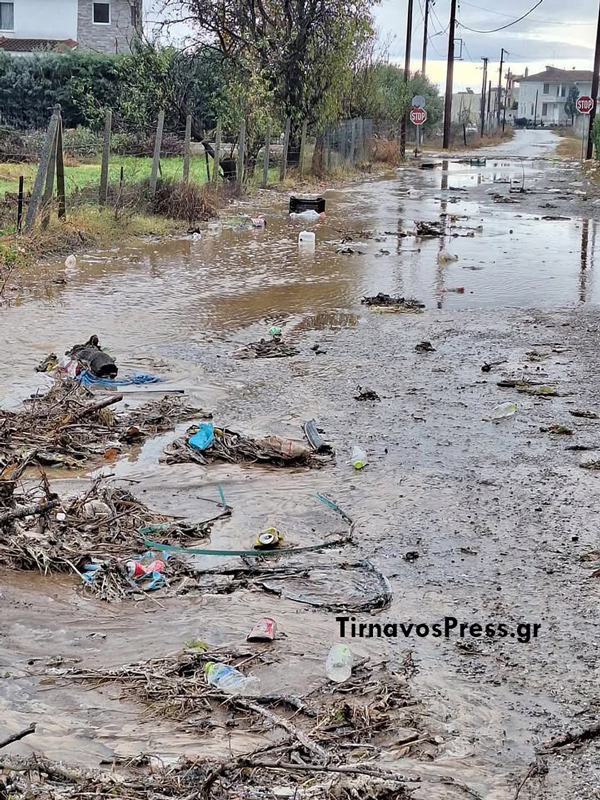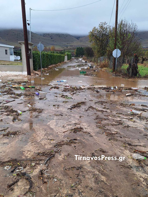 Σε επαρχιακούς δρόμους του Τυρνάβου, οι έντονες βροχοπτώσεις έχουν προκαλέσει τη συγκέντρωση λάσπης και φερτών υλικών, δυσκολεύοντας την κυκλοφορία.