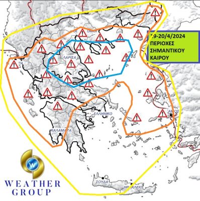 Η αλλαγή του καιρού θα ξεκινήσει από τα δυτικά κοντά στο μεσημέρι της 19ης Απριλίου με βροχές και καταιγίδες ενώ τα φαινόμενα έως το απόγευμα θα έχουν επεκταθεί στις περισσότερες περιοχές του Ιονίου των ηπειρωτικών και τμημάτων του βορείου Αιγαίου ενω οσο πάμε προς αργά το βράδυ και τα μεσάνυχτα τα φαινόμενα θα ενταθούν και με την αλλαγή της ημέρας θα γίνουν πολύ ισχυρά σε συγκεκριμένες περιοχές της χώρας με σταδιακή βελτίωση πρωτα στα δυτικά τις πρωινές ώρες και μετά το μεσημέρι στις περισσότερες περιοχές της ηπειρωτικής χώρας. Τα φαινόμενα έως και της 20 του μήνα το απόγευμα θα έχουν παραμείνει μόνο στη Θράκη και το ανατολικό Αιγαίο με βελτίωση και εκεί αργά τη νύχτα.