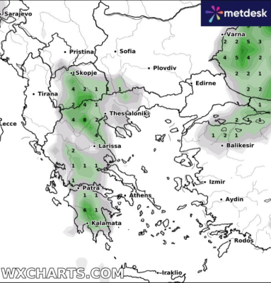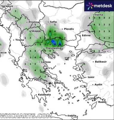 Θεσσαλία και Σποράδες: προβλέπεται αρχικά άστατος καιρός στα παραθαλάσσια τμήματα του νομού Λάρισας και Μαγνησίας και στις  Σποράδες  με μπόρες και καταιγίδες που θα εξασθενήσουν όσο πάμε προς τις πρωινές ώρες ενώ θα επεκταθούν για λίγο και στο εσωτερικό της πεδιάδας και κυρίως στην περιοχή της Αγιας της Λάρισας των Φαρσάλων και του Παλαμά με σταδιακή εξασθένηση νωρίς το πρωί. Σταδιακά όσο πάμε προς το μεσημέρι τα φαινόμενα θα σταματήσουν στα παραθαλάσσια και θα ξεκινήσουν να  σημειώνονται και πάλι με μικρή ως μέτρια έντασης στο εσωτερικό της πεδιάδας και κυρίως κοντά στα βουνά με σταδιακή βελτίωση από αργά το απόγευμα προς το βράδυ παντού. Ενδεχομένως αξιόλογα τα φαινόμενα στο παραλιακό κομμάτι του νομού Λάρισας και Μαγνησίας και ενδεχομένως στις Σποράδες.