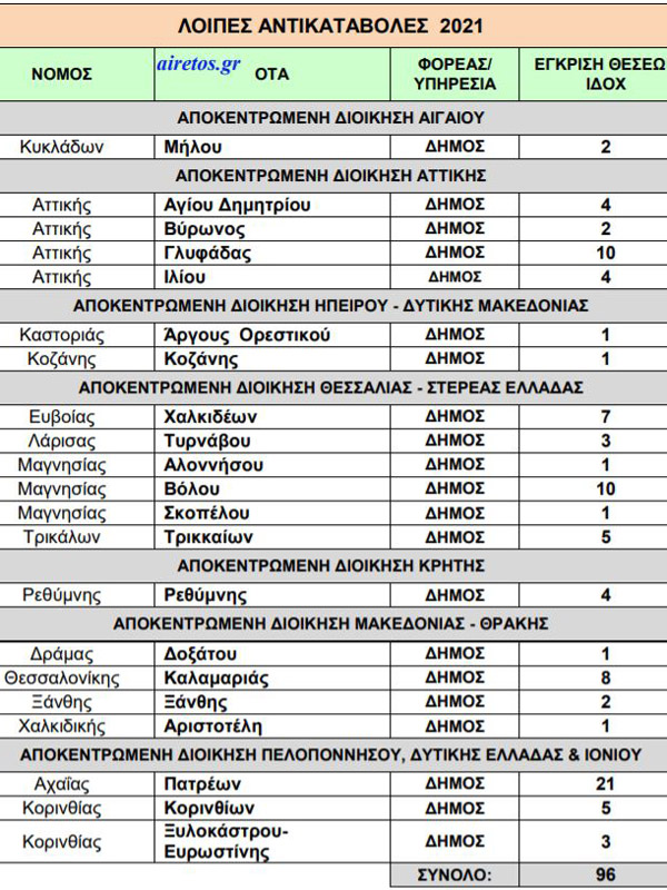 Προσλήψεις 96 συμβασιούχων σε Δήμους όλης της χώρας – 3 στο Δήμο Τυρνάβου