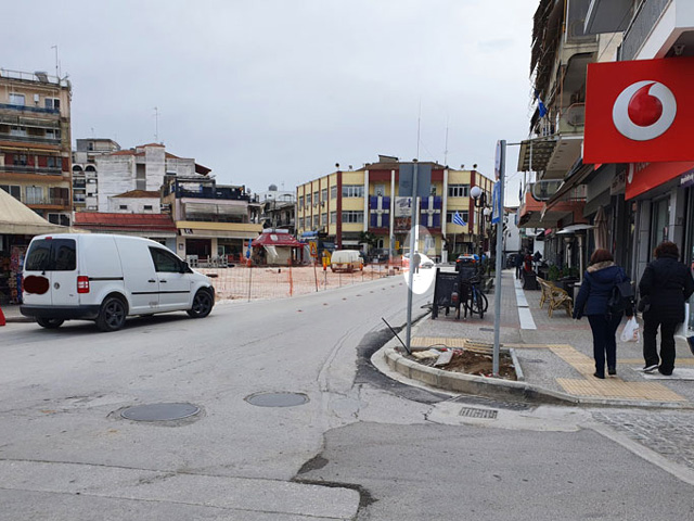 Η πλατεία λοιπόν για να φτάσουμε στην ουσία έχει χάσει τα πεζοδρόμια της περιμετρικά προκειμένου να δημιουργηθούν καινούργια. Περνώντας κάποιος από την πλατεία θα παρατηρήσει ότι πολύς κόσμος ξεχνώντας ότι δεν υπάρχει πεζοδρόμιο περνάει απέναντι από την μεριά της πλατείας.