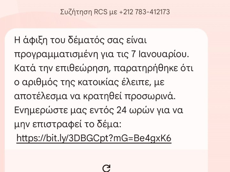 Μια νέα μέθοδος εξαπάτησης κάνει την εμφάνισή της, με απατεώνες να αποστέλλουν ψεύτικα μηνύματα σχετικά με την παράδοση δεμάτων. Το μήνυμα ενημερώνει τον παραλήπτη ότι το δέμα του έχει «κρατηθεί προσωρινά» λόγω ελλιπών στοιχείων, όπως ο αριθμός της κατοικίας. Στη συνέχεια, καλεί τον παραλήπτη να επισκεφθεί έναν σύνδεσμο για να «επιβεβαιώσει» τα στοιχεία του.