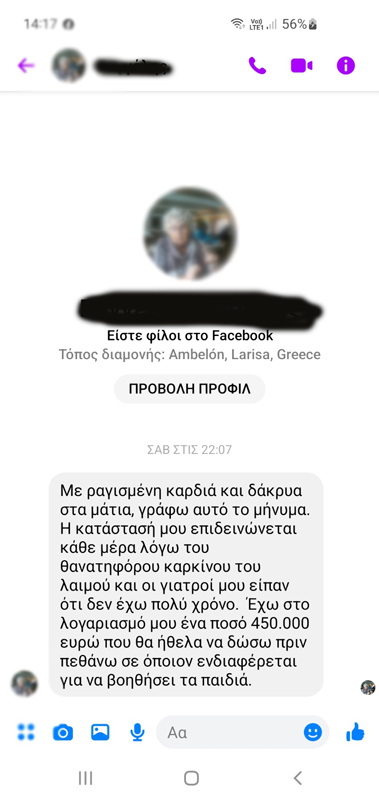 Μεγάλη προσοχή για τις απάτες μην εμπιστεύεστε ακόμη και αν βλέπεται πως γνωρίζεται το προφίλ που σας στέλνει και να ενημερώνεται τις αρχές μόλις αντιληφθείτε κάτι περίεργο.