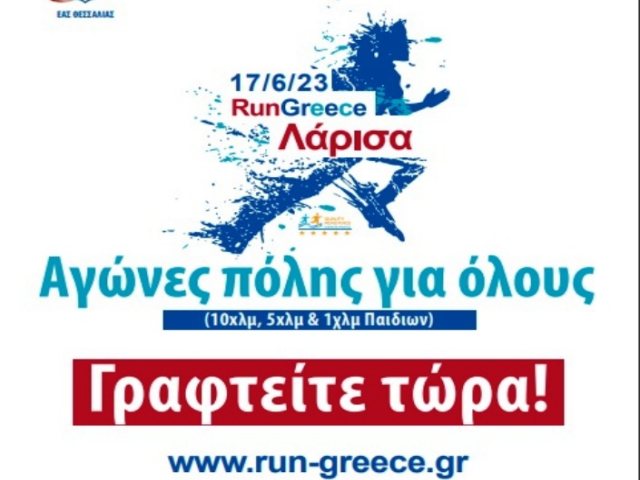 Τον πρώτο νυχτερινό λαϊκό αγώνα δρόμου Run Greece Λάρισα συνδιοργανώνουν το Σάββατο 17 Ιουνίου 2023 ο ΣΕΓΑΣ – ΕΑΣ ΣΕΓΑΣ Θεσσαλίας, η Περιφέρεια Θεσσαλίας και ο Δήμος Λαρισαίων. Το νυχτερινό Run Greece Λάρισα περιλαμβάνει