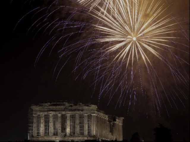 Τη νύχτα, μέρα έκαναν τα πολυάριθμα πυροτεχνήματα που γέμισαν τον ουρανό της Αθήνας στην γιορτή υποδοχής του νέου έτους που είχε στηθεί στην πλατεία Συντάγματος.
