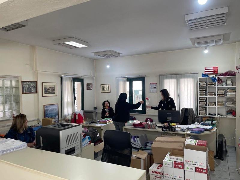 Ο Δήμαρχος και εκπρόσωποι της δημοτικής αρχής επισκέφθηκαν τις δημοτικές υπηρεσίες, ανταλλάσσοντας ευχές και αναγνωρίζοντας τη συμβολή των γυναικών στην εύρυθμη λειτουργία του Δήμου και την τοπική κοινωνία.