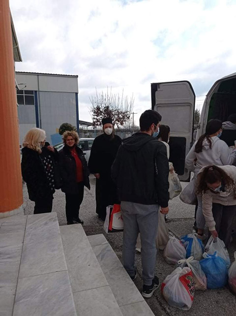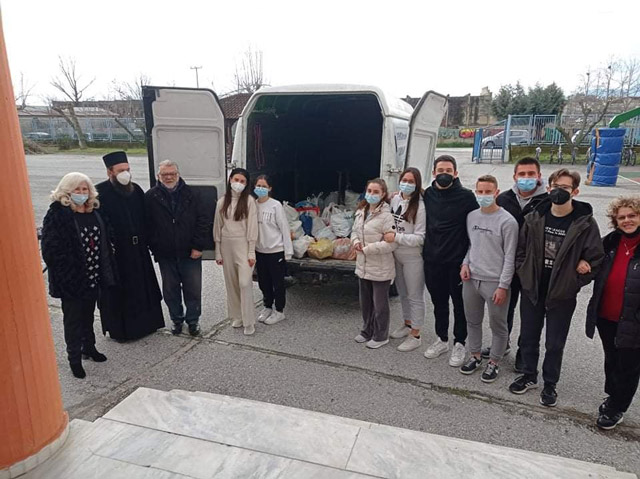 Οι μαθητές/τριες του  ΓΕ.Λ Τυρνάβου μετά από πρωτοβουλία της εκπαιδευτικού, Τζιγάνη Αγλαΐας , συγκέντρωσαν τρόφιμα  τα οποία παρέδωσαν στον πατέρα, Ιάκωβο Καλκούλη, για να διανεμηθούν σε άπορες οικογένειες της ενορίας του Αγίου Γεωργίου Τυρνάβου.