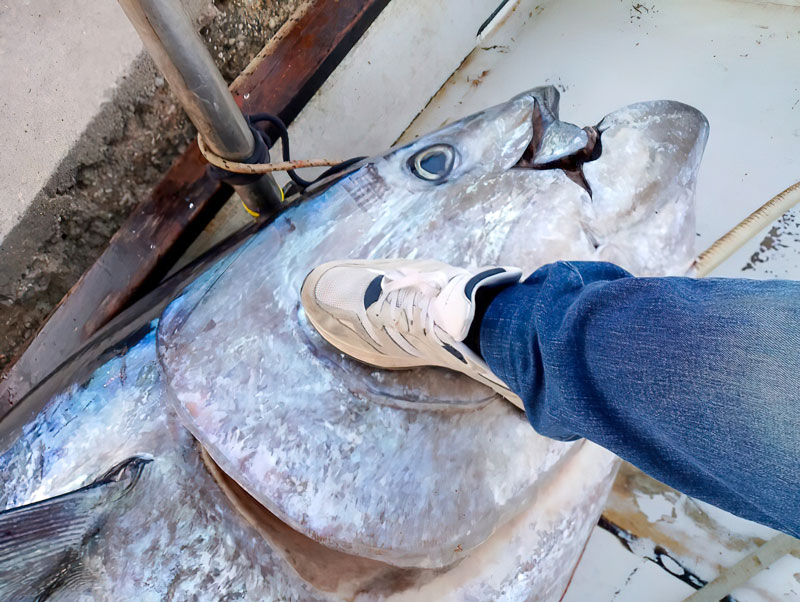 Το μέγεθος του ψαριού ήταν τέτοιο που χρειάστηκε γερανός για να βγει στη στεριά.