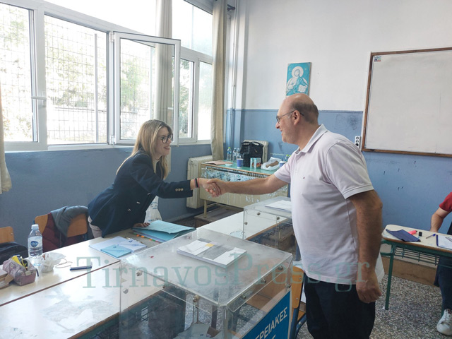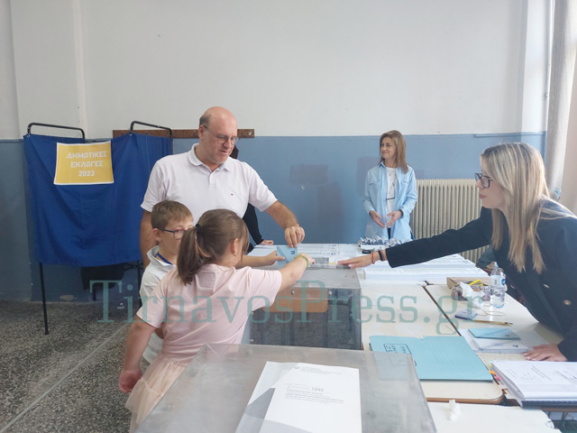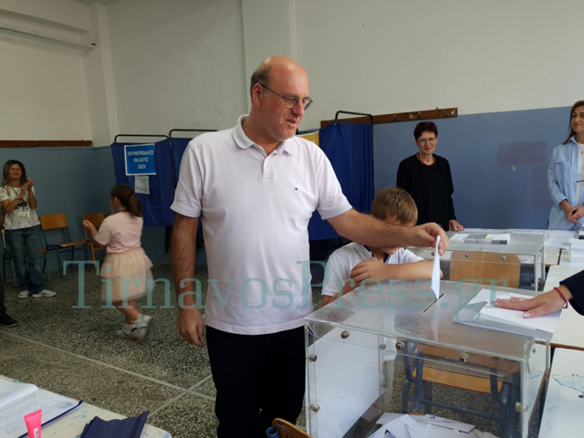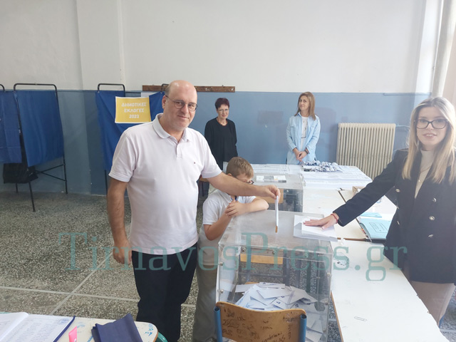 Στο 1ο Γυμνάσιο Τυρνάβου ψήφισε ο Σάμερ Αθανάσιος Αμάρι, υποψήφιος δήμαρχος Δήμου Τυρνάβου και επικεφαλής του συνδυασμού ”Πόλη Που Θέλουμε”.
