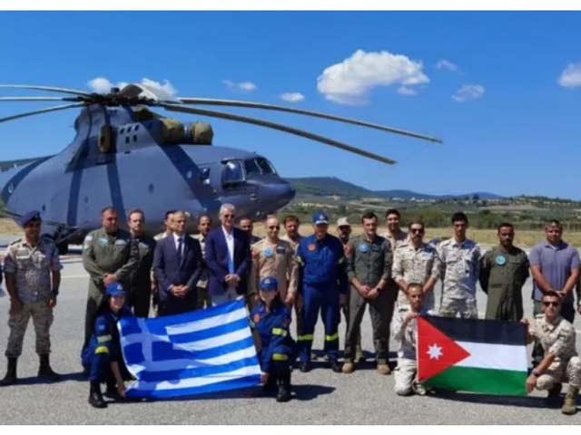 Το πυροσβεστικό ελικόπτερο, που στάλθηκε με πρωτοβουλία του βασιλιά της Ιορδανίας και της κυβέρνησης της Ιορδανίας και βρίσκεται στη χώρα μας από τις 29 Ιουλίου, αποτελείται από 16μελές πλήρωμα και θα παραμείνει για λίγες ακόμη ημέρες στην Ελλάδα, ώστε να επιχειρήσει άμεσα εφόσον χρειαστεί.