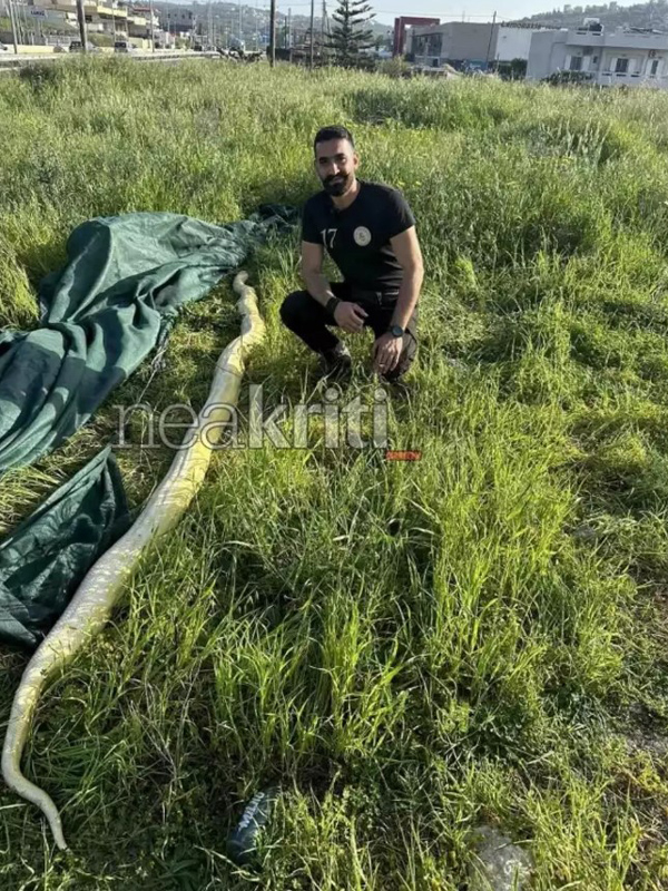 Ο πύθωνας, όπως φαίνεται και στις φωτογραφίες του neakriti.gr, υπολογίζεται πως είχε μήκος περίπου 5 μέτρα.