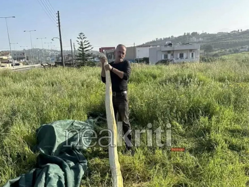 Κάθε άλλο παρά ευχάριστη ήταν η έκπληξη που περίμενε δύο άνδρες στην περιοχή του Εσταυρωμένου στο Ηράκλειο, καθώς όταν έφτασαν σε χωράφι γνωστού τους, αντίκρισαν ένα τεράστιο φίδι, που ήταν πύθωνας.