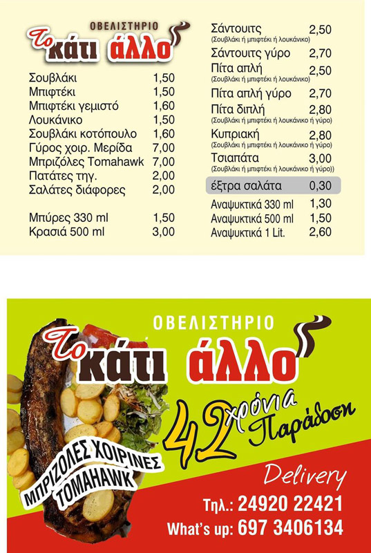 Το γνωστό Οβελιστήριο στον Τύρναβο  “Το Κάτι Άλλο” με 42 χρόνια παράδοση ζητά μια κοπέλα για εργασία.