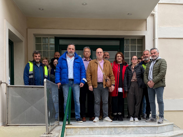 για να συζητήσουν με τους εργαζόμενους για το επίμαχο νομοσχέδιο που οδηγεί σε ιδιωτικοποίηση του νερού και για να ενημερωθούν για την πορεία της επιχείρησης, για τα έργα αποχέτευσης σε Αργυροπούλι και Αμπελώνα, για το έργο του Βιολογικού Καθαρισμού στο Δαμάσι αλλά και για την τύχη των μεγάλων έργων που έχει προγραμματίσει να υλοποιήσει η επιχείρηση.