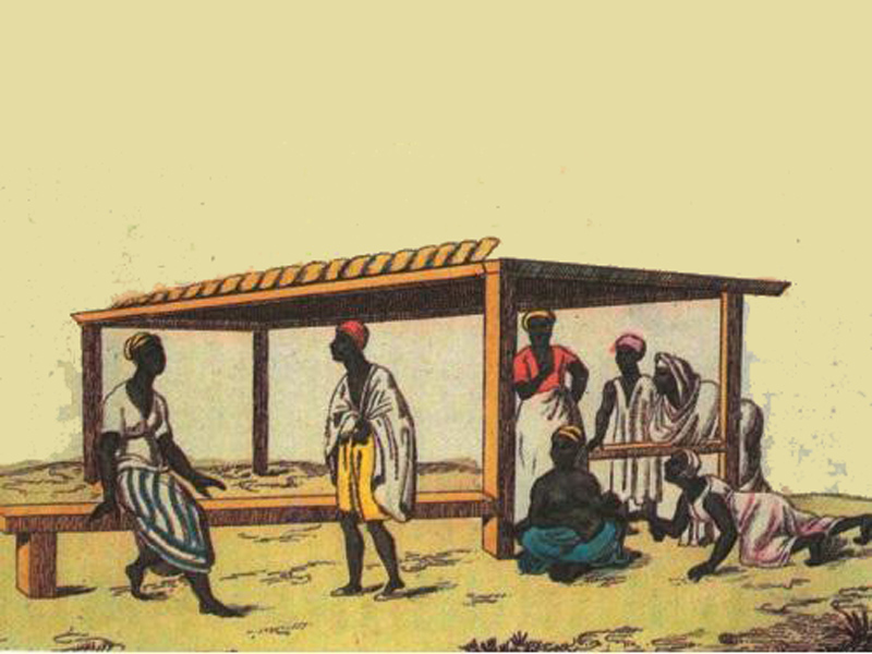 Νέγρες στο πανηγύρι των Φαρσάλων. Επιχρωματισμένη χαλκογραφία. Σχέδιο Gropius, χάραξη Kobike. Εθνική Βιβλιοθήκη.