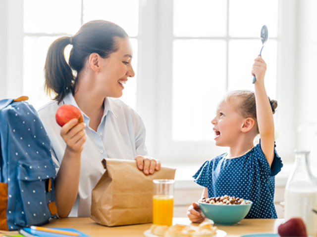 Ξυπνήστε νωρίτερα με το παιδί σας ώστε να φάτε μαζί ένα υγιεινό πρωινό. Αυτό θα βοηθήσει στην ενέργεια που χρειάζεται το παιδί αλλά και στην αποφυγή υπερφαγικών επεισοδίων κατά τη διάρκεια της ημέρας.