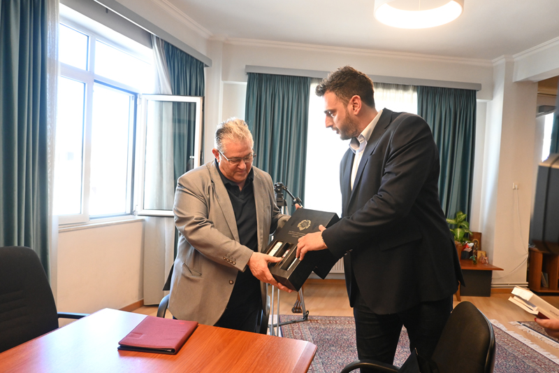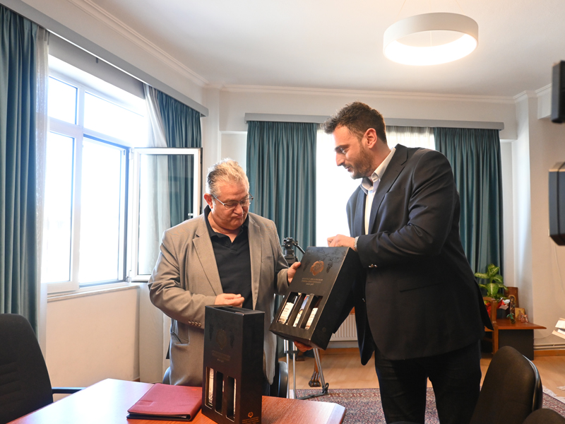 Φυσικά ο Δήμαρχος έδωσε στον κ. Κουτσούμπα τα ανάλογα δώρα δηλαδή τσίπουρο, κρασί και τρία βιβλία για τον τόπο.