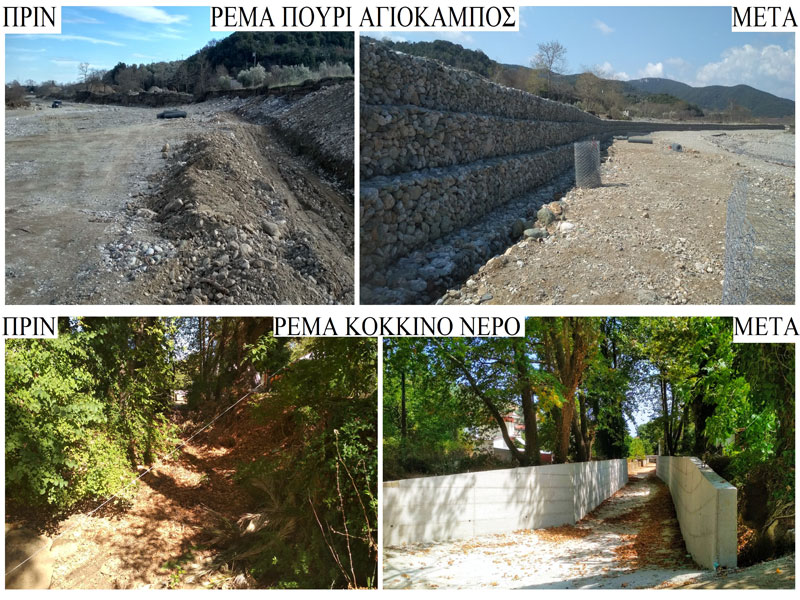 - Κατασκευή συρματοκιβωτίων μήκους 400,00μ στο ρέμα «Πουρί» ανάντι του τεχνικού
