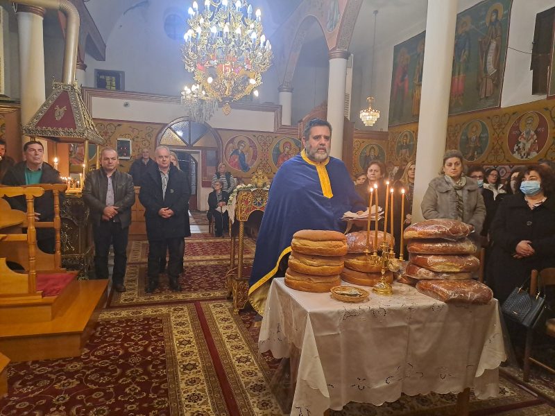 Προ της απολύσεως ο π. Βασίλειος ευλόγησε τους άρτους και τα κόλλυβα του Αγίου.