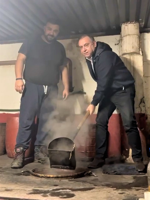 Ο Λαρισαίος πολιτικός, αποδεχόμενος σχετική πρόσκληση, παρακολούθησε, αλλά και συμμετείχε στην διαδικασία της απόσταξης και την… ιεροτελεστία των καζαναριών, που καλά κρατεί στις μέρες μας.